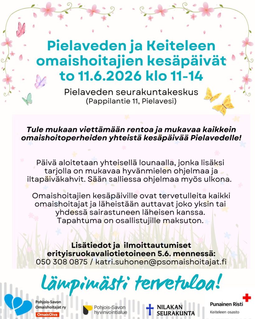 Tule mukaan viettämään omaishoitoperheiden yhteistä kesäpäivää Pielavedelle torstaina 11.6.2026 klo 11-14!